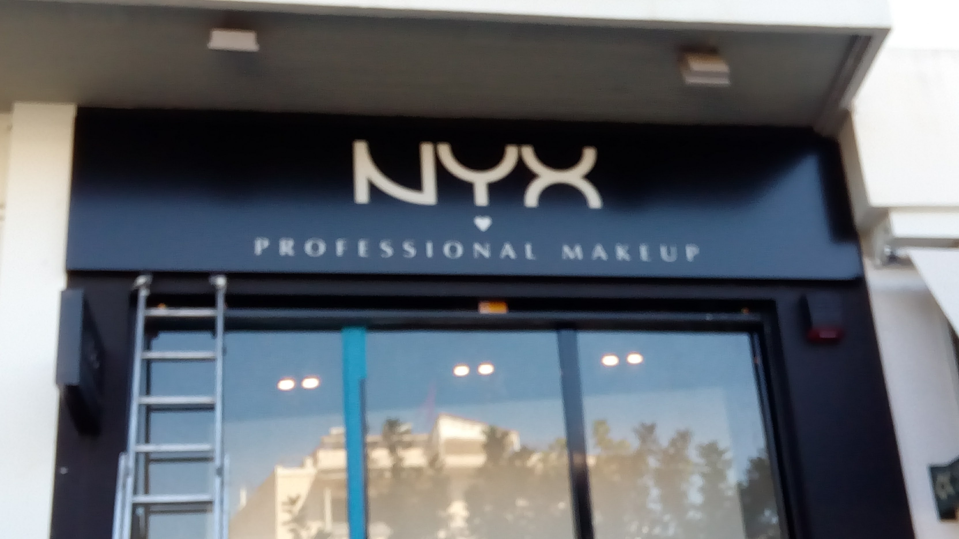 NYX Μοναστηράκι | Φωτεινή επιγραφή με κατασκευή με etalbond, με φωτισμό εσωτερικά με led modules.