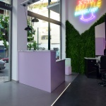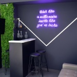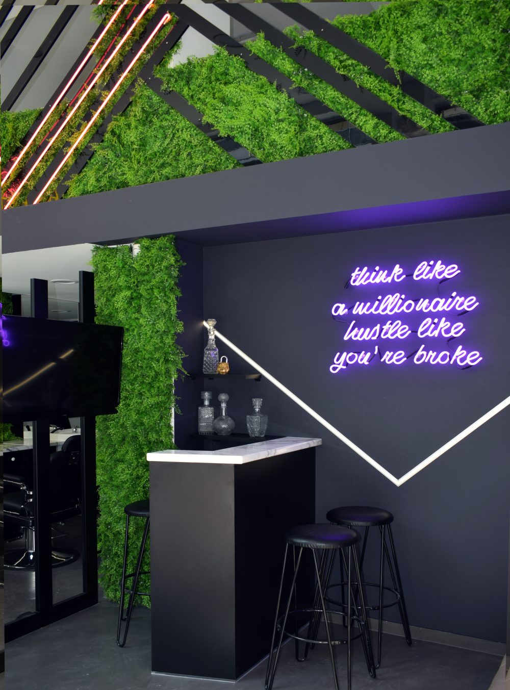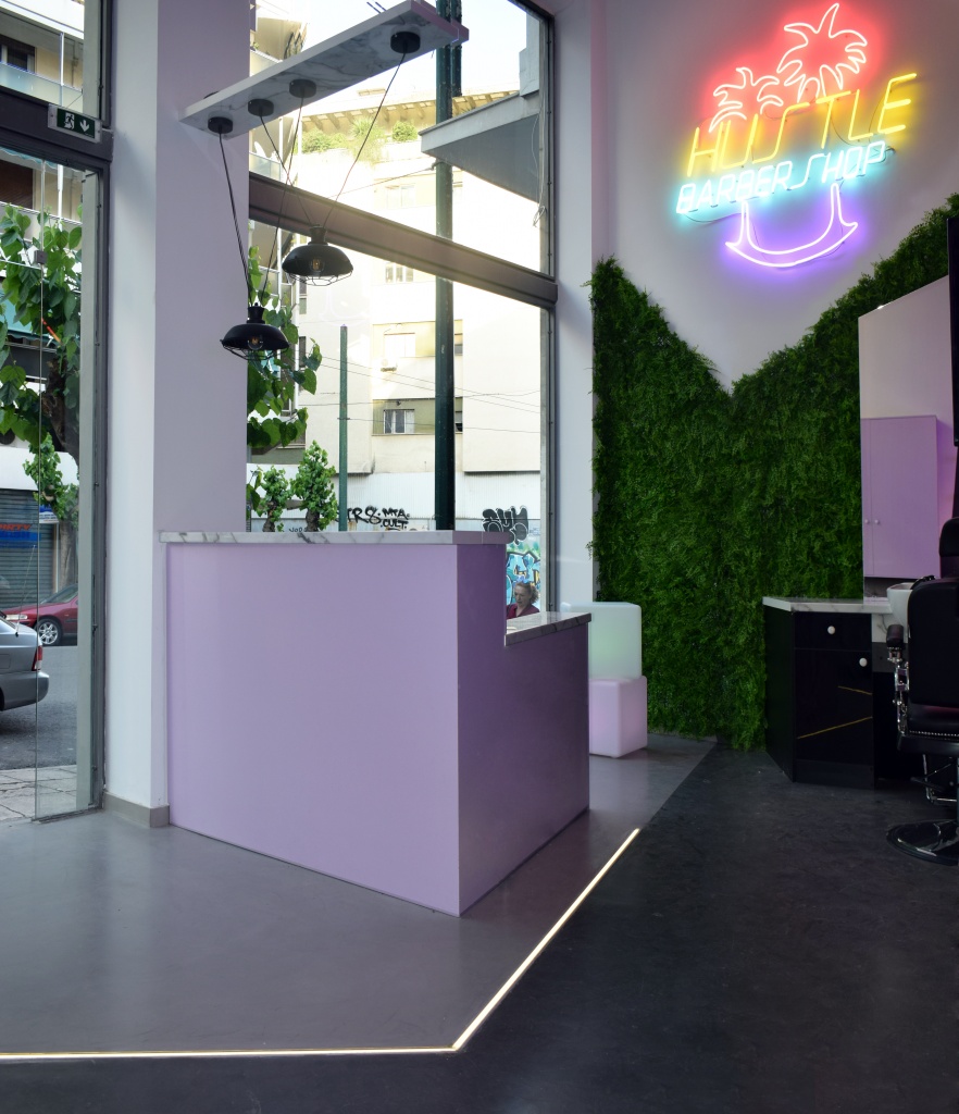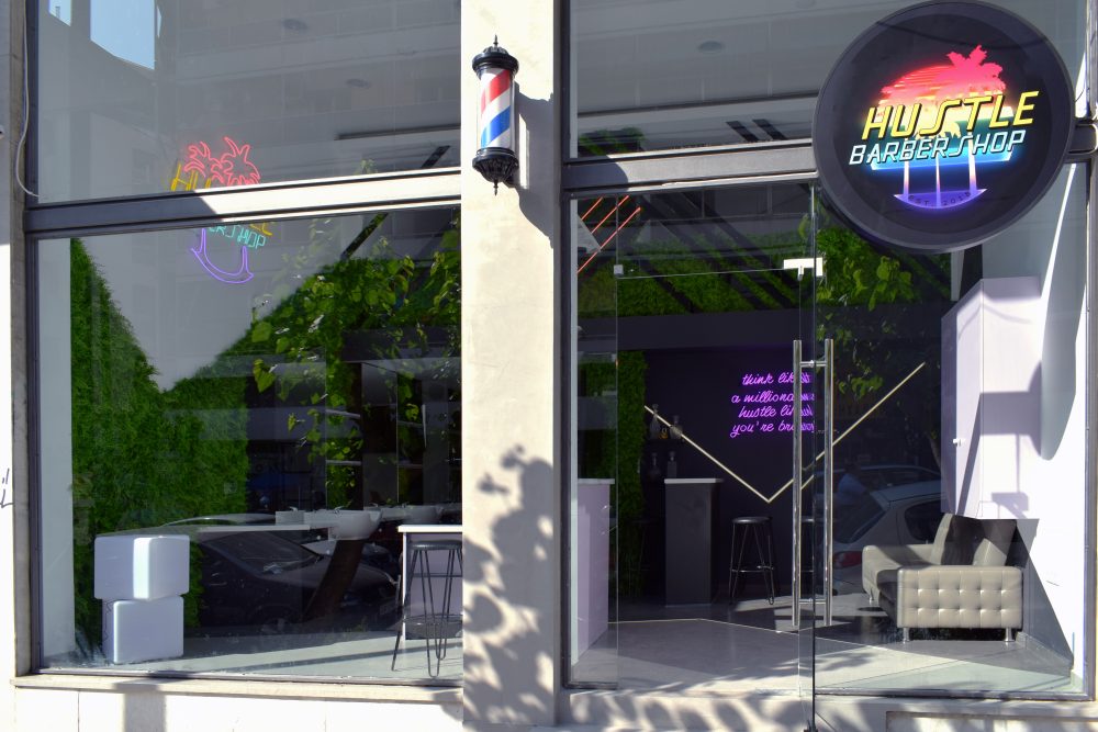 Hustle Barbershop | Επιγραφές νέον σε διάφορα χρώματα, στον εσωτερικό χώρο του καταστήματος